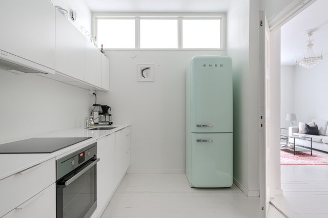 Asunto on remontoitu tyylikkäällä ilmeellä, ja esimerkiksi keittiö ja kylpyhuone ovat saaneet täysin uuden ilmeen. Raikkaan vaalea erillinen keittiö on varustettu laadukkailla Smegin ja AEG:n kodinkoneilla, jotka täydentävät tyylikkään sekä ajattoman kokonaisuuden. Kylpyhuone on kooltaan aikakaudelle tyypillisiä kylpyhuoneita suurempi ja sen laadukkaat pinnat sekä harkitut yksityiskohdat luovat ylellisen tunnelman.
