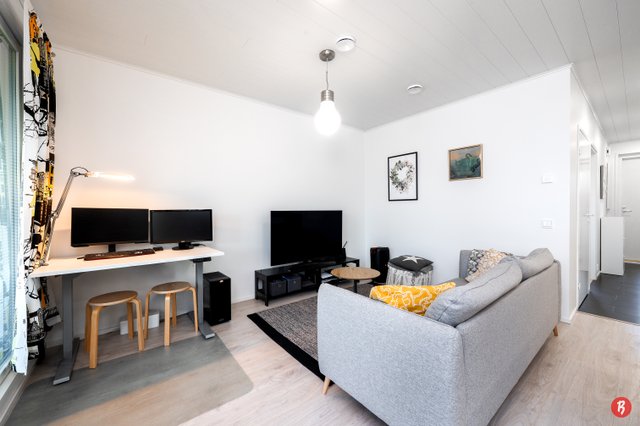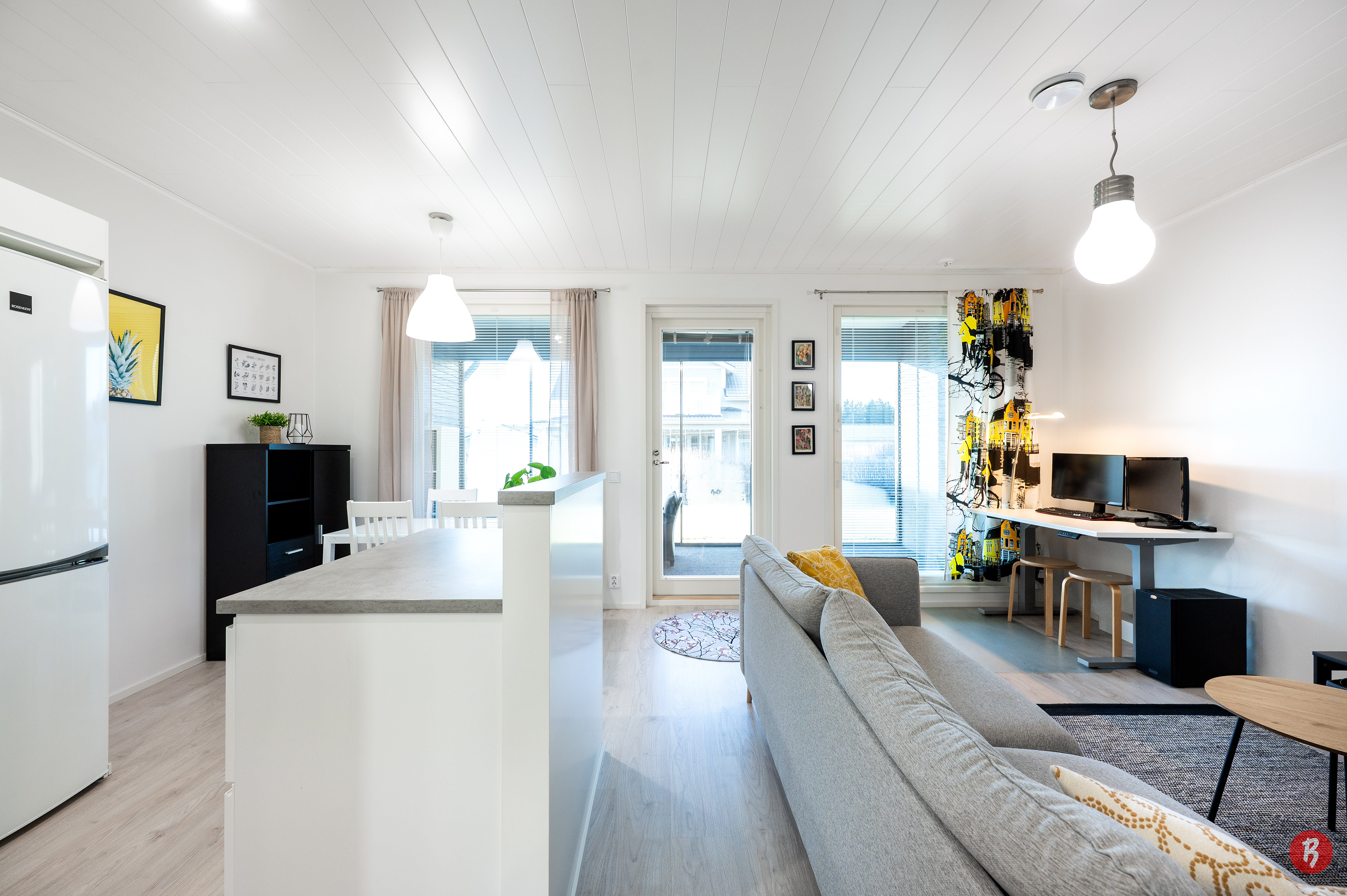 Tämä vuonna 2019 valmistunut huoneisto on kuin uusi, pohjaratkaisu on erittäin käytännöllinen. Keittiö ja olohuone yhtenäistä tilaa, olohuoneesta käynti tilavalle lasitetulle terassille. Makuuhuoneessa on tilaa sekä vaatehuone joka helpottaa säilytysratkaisuja.