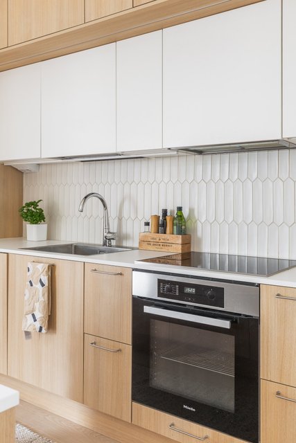 Koko kodissa vallitsee harmoninen ja erittäin muodikas värimaailma. Luonnonläheisiä sävyjä sekä laadukkaita materiaaleja yhdistettynä korkealaatuisiin keittiön kodinkoneisiin.