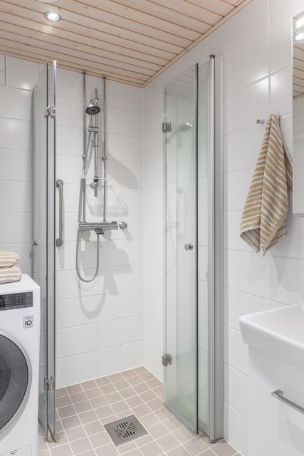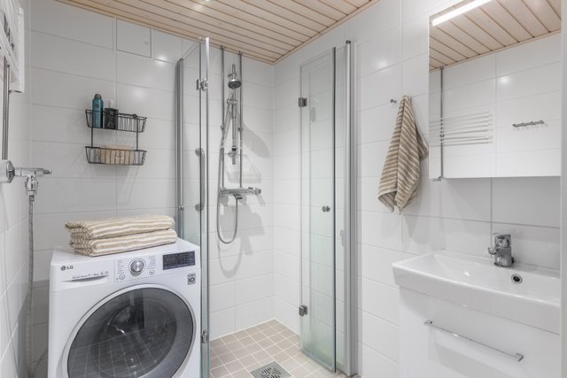 - Kylpyhuone uusittu linjasaneerauksen yhteydessä 2018. Varustus: Suihkunurkka, suihku, pesukoneliitäntä, allas, allaskaappi, valopeili. Laattalattia, seinät kaakeloitu. Vesikiertoinen lattialämmitys.