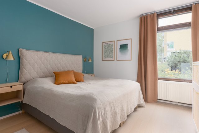 - Tilavassa makuuhuoneessa on vuonna 2023 asennetut vinyylilankkulattiat ja seinät maalattu. Makuuhuoneen yhteydessä myös vaatehuone.