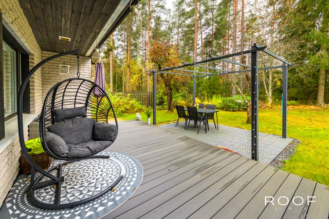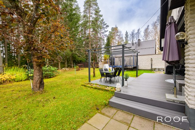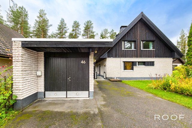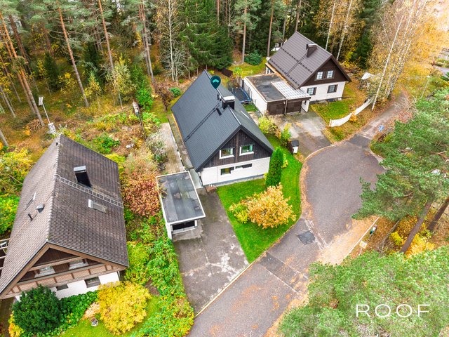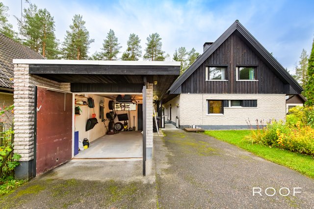 Suojaisa takapiha rajautuu kaupungin metsäalueeseen. Erillinen autotallirakennus.