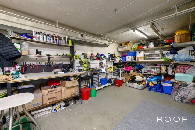 Säilytystilaa on runsaasti. Kellarikerroksesta löytyy mm. varastotilaa, vaatehuone, verstas ja harrastehuone.