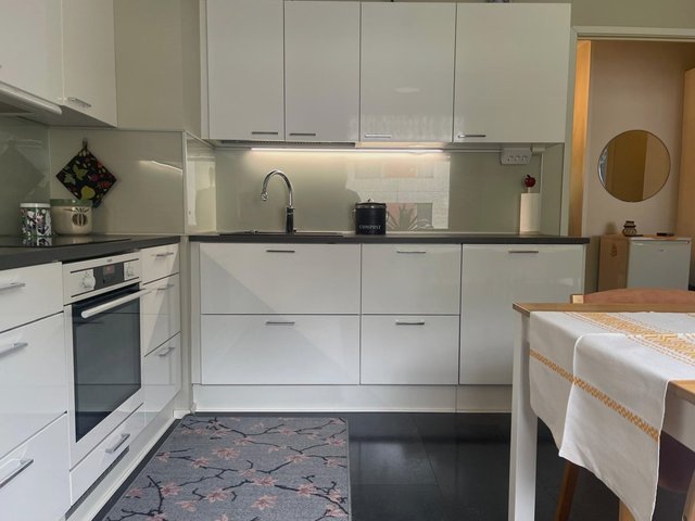 Asunnon valtteja ovat tyylikäs, remontoitu keittiö ja toimiva pohjaratkaisu.