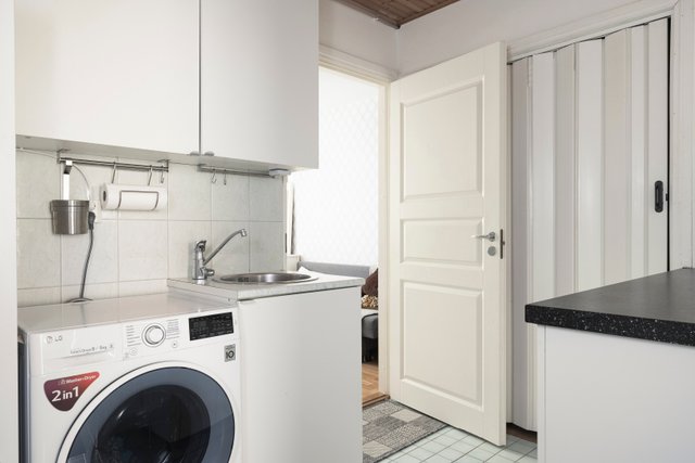 - Seinät kaakeli/maali/tapetti. Lattia laattaa. Varustukset: pesukoneliitäntä, lattialämmitys, Vesivaraaja, ilmastointikone, kaapistot, pesuallas.