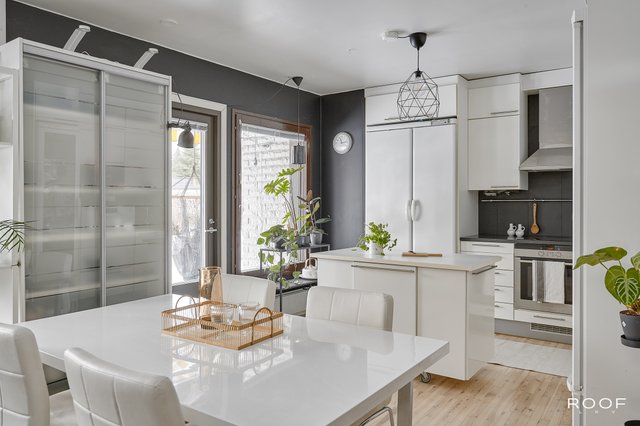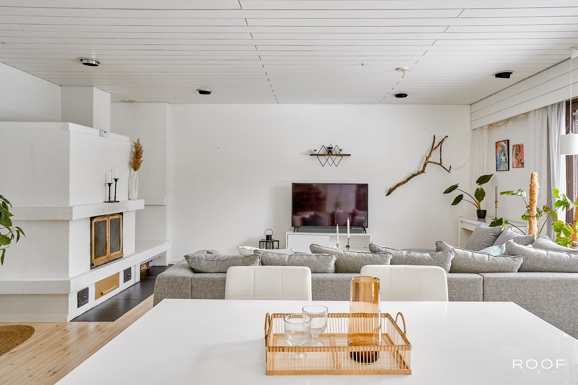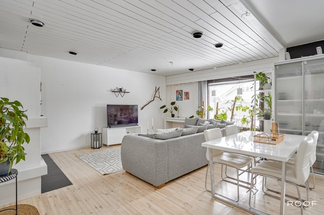 Tämä yli 100 m²:n yksitasoinen rivitaloasunto tarjoaa avaraa ja käytännöllistä asumista. Keittiö ja olohuone muodostavat yhtenäisen, valoisan tilan, jossa on tilaa yhdessäololle. Lisäksi harvinaisena herkkuna tässä rivitalokodissa on oma takka, joka luo lämpöä ja tunnelmaa.