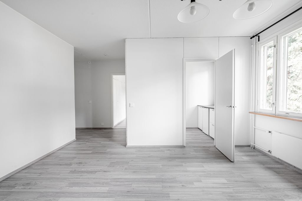 Tämän toisen kerroksen asunto on hyvässä kunnossa, keittiö ja lattia on juuri uusittu. Vaaleasävyinen ikkunallinen keittokomero on juuri saanut uuden ilmeen ja se on todella käytännöllinen. Valoisaan olohuoneeseen mahtuu kaikki tarvittavat huonekalut. Makuuhuone on hyvän kokoinen ja sinne mahtuu vaikka työpiste. Kylpyhuone on tilava ja pyykinpesukone on oma paikka.