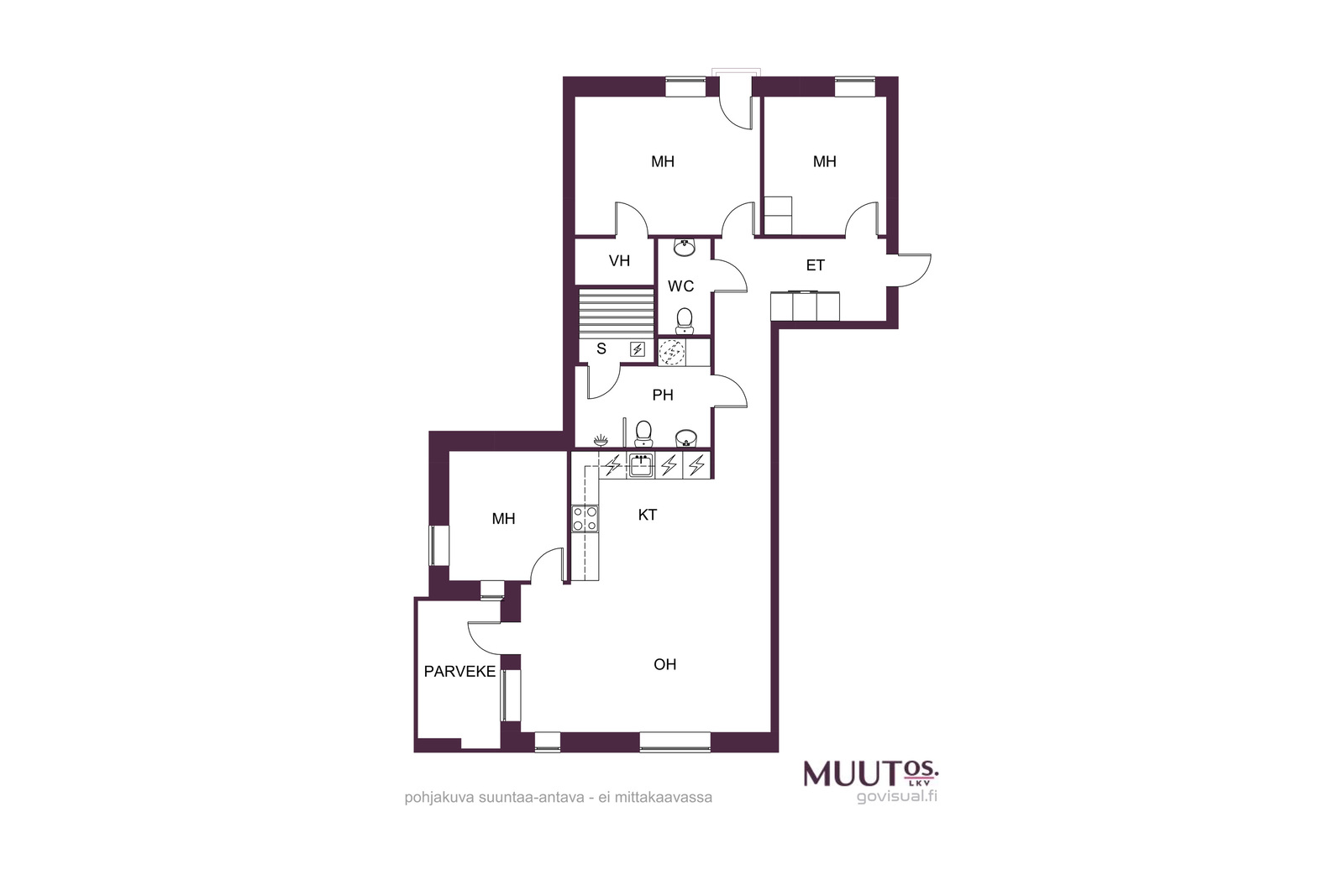 - Huoneiston todellinen pinta-ala voi olla yhtiöjärjestyksessä, isännöitsijäntodistuksessa ja esitteessä mainittua pienempi tai suurempi. Hinta ei ole pinta-alaperusteinen. Yhtiöjärjestyksen mukainen huoneistoselitelmä: 4 h + kt + s