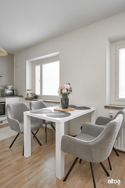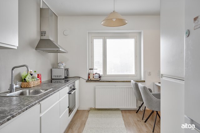 Tämä kaunokainen on käynyt suuren muodonmuutoksen ja kokonaisvaltainen remontti on tehty vuonna 2021. Keittiö on avattu olohuoneen suuntaan tuoden avaran tunnelman. Keittiön varustelu on moderni, ja uusitussa kylpyhuoneessa on mukavuutta lisäävä lattialämmitys.