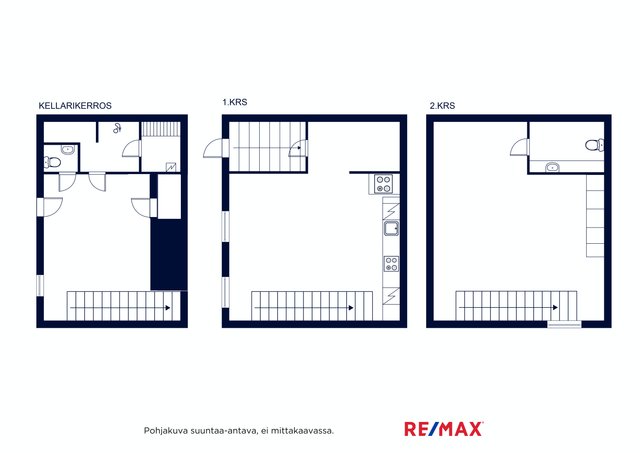 - Asuntoon on tehty keskikerroksen (27 m²) lisäksi kellaritilat sekä ullakkotilat. Muiden tilojen pinta-ala (kellari+ullakko) 49 m² on omistajalta saatu tieto. Luetellut pinta-alat eivät ole virallista asuinpinta-alaa. Kellarin ja ullakon käyttötarkoitukset, huonekorkeudet ja ikkunapinta-alat eivät välttämättä täytä asuinpinta-alaksi laskettavan tilan vaatimuksia. Ei tarkistusmitattu. Pinta-alat saattavat tämän ikäisissä kohteissa (yhtiö rekisteröity ennen 01.01.1992) poiketa olennaisestikin asuinrakennusten nykyisten mittaustapojen ja standardien (SFS 5139) mukaan laskettavasta asuintilojen pinta-alasta. Pinta-ala voi siis olla edellä mainittua pienempi tai suurempi.