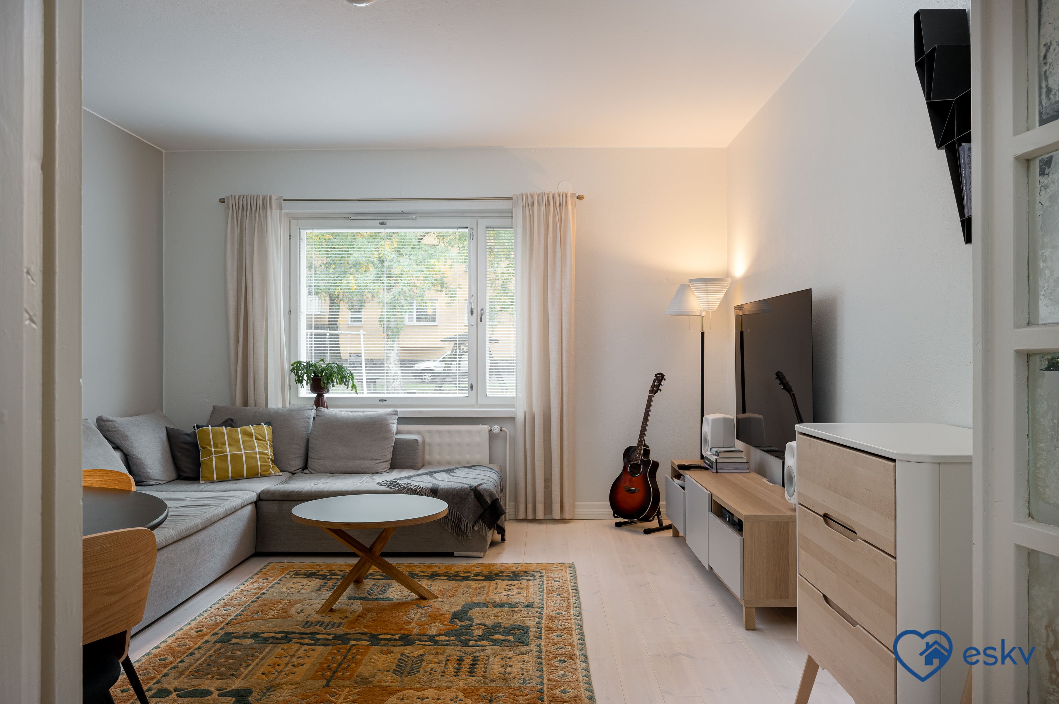 - Tilava olohuone kohti yhtiön sisäpihaa.