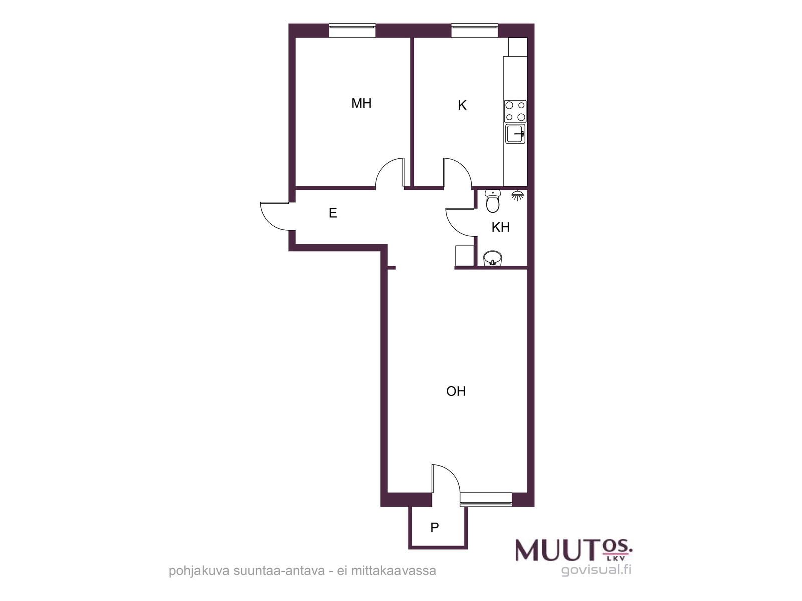 - Lisätietoja sisältyvistä varusteista: kaapistot, kiinteät valaisimet, verhotangot