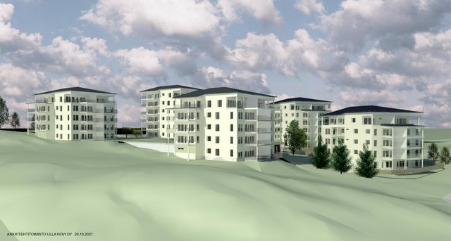 Rakennuspaikalle on ATT Ulla Hovin alustavat suunnitelmat kolmelle kerrostalolle ja parkkihallille.