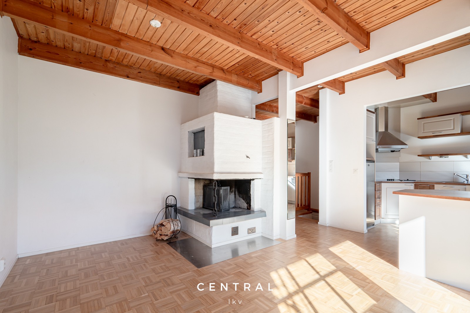 - Saareke erottaa keittiön olohuoneesta, jossa takka.