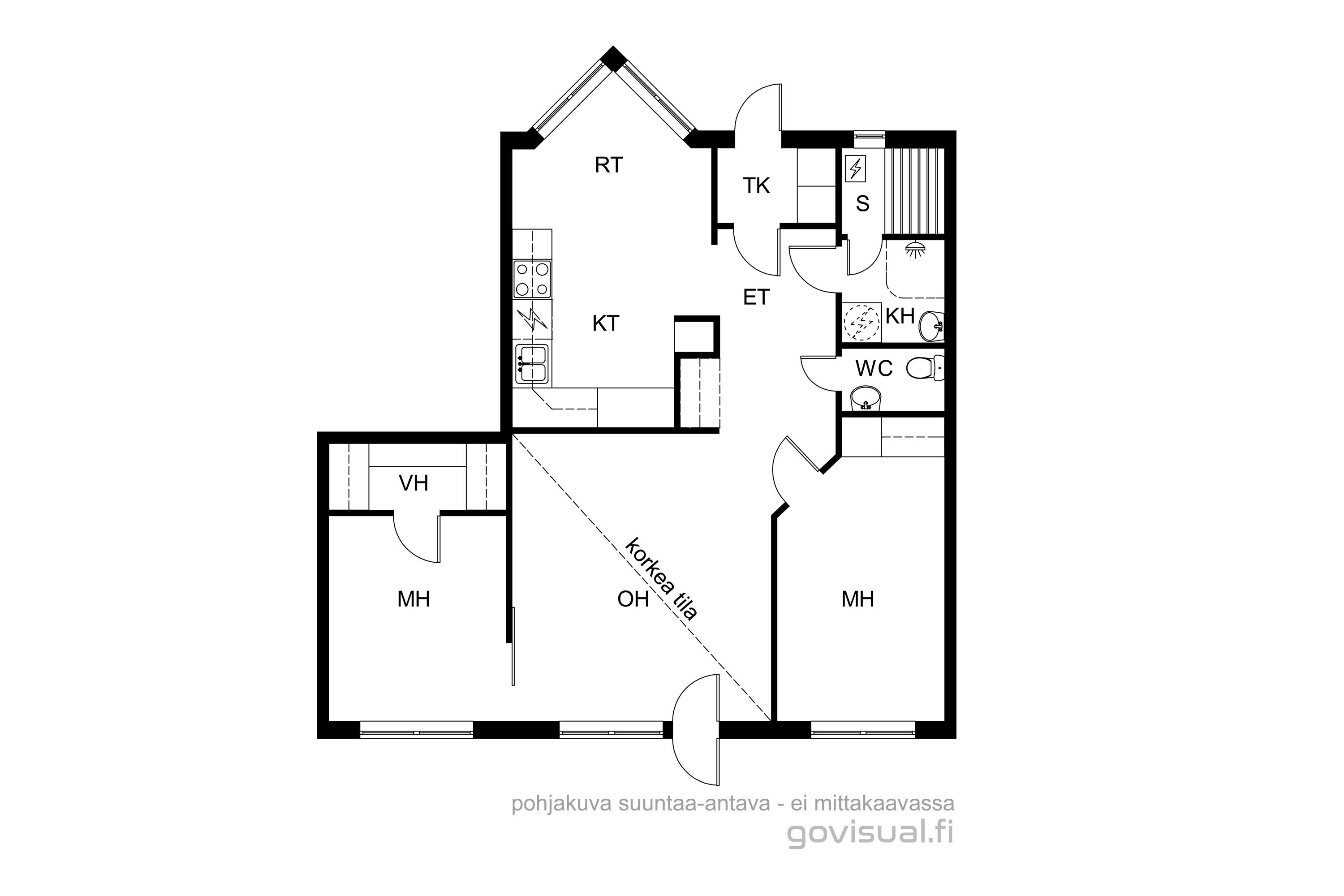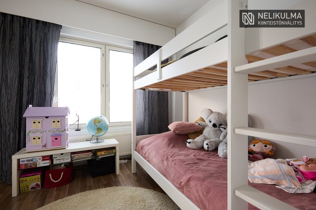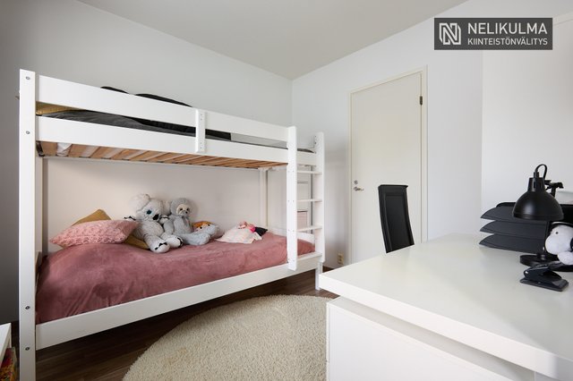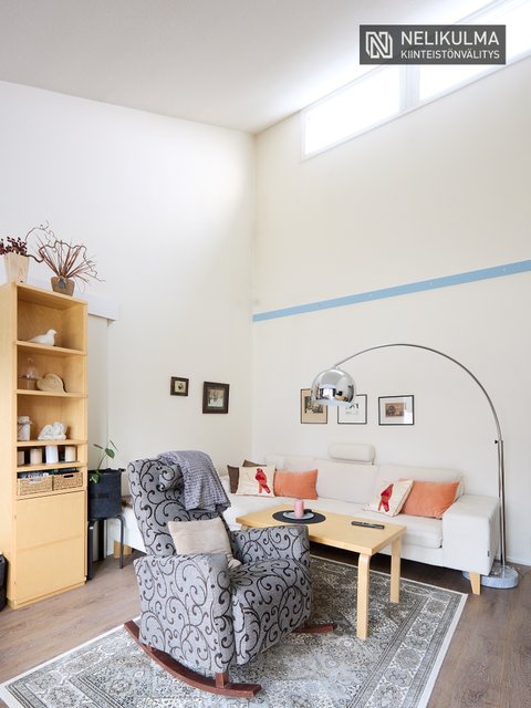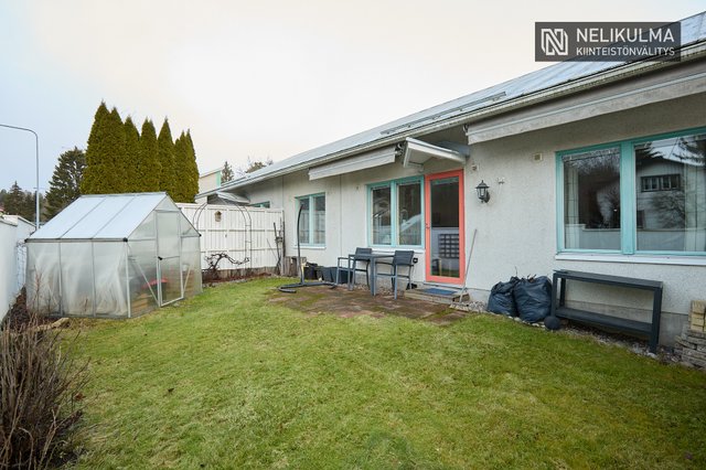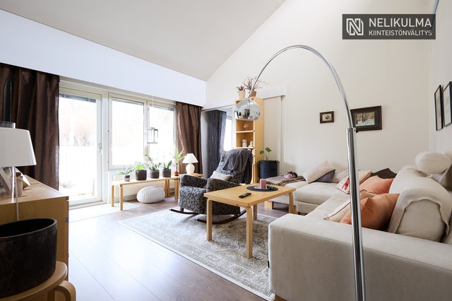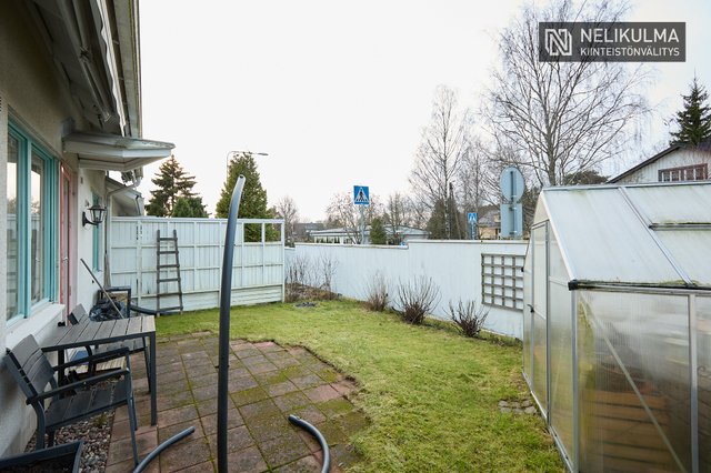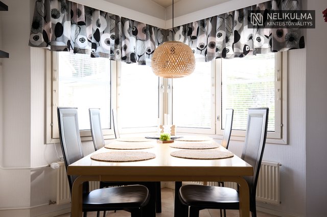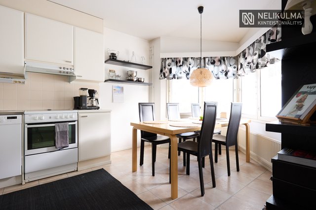 Tilavaan keittiöön mahtuu hyvin 6-hengen ruokapöytä ja ikkunaerkkeri luo tunnelmaa. Olohuoneessa huonekorkeus tuo avaruutta ja valoisuutta. Kaksi makuuhuonetta, uusittu kylpyhuone/sauna ja erillinen wc muodostavat toimivan pohjan. Mukavuutta lisää oma piha-alue jossa onnistuu vaikka pieni harrasteviljely.