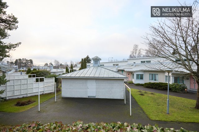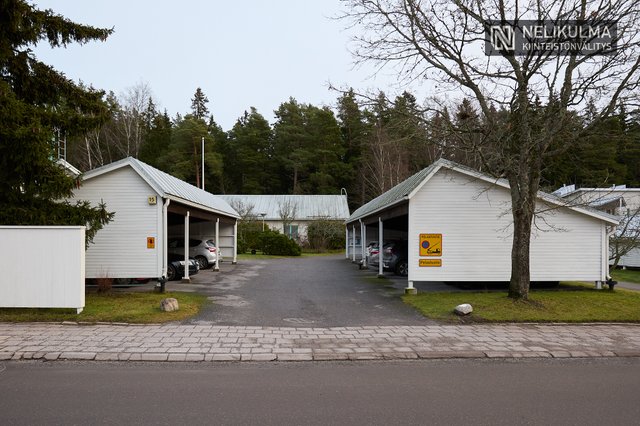 Asunnolle kuuluu autokatospaikka sekä erillinen ulkovarasto.