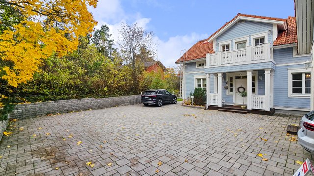 Takapihalla odottaa suuri terassi, siisti nurmialue, istutuksia sekä lasten iloksi leikkimökki. Etupiha on kivetty, tilava ja erittäin käytännöllinen: autokatos, varasto ja runsaasti tilaa usealle autolle tai vaikkapa pihapeleihin – kaikki valmiina uuden perheen käyttöön.
