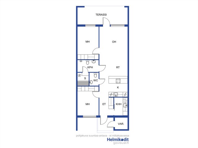 Kahden makuuhuoneen koti tarjoaa tilaa koko perheelle, ja laadukkaasti varusteltu keittiö tekee ruoanlaitosta nautinnon. Olohuoneen ja keittiön yhdistelmä luo tilaan avaruutta ja yhteisöllisyyttä, kun taas oma sauna ja tilava kylpyhuone tarjoavat rentoutumisen hetkiä arjen keskellä.