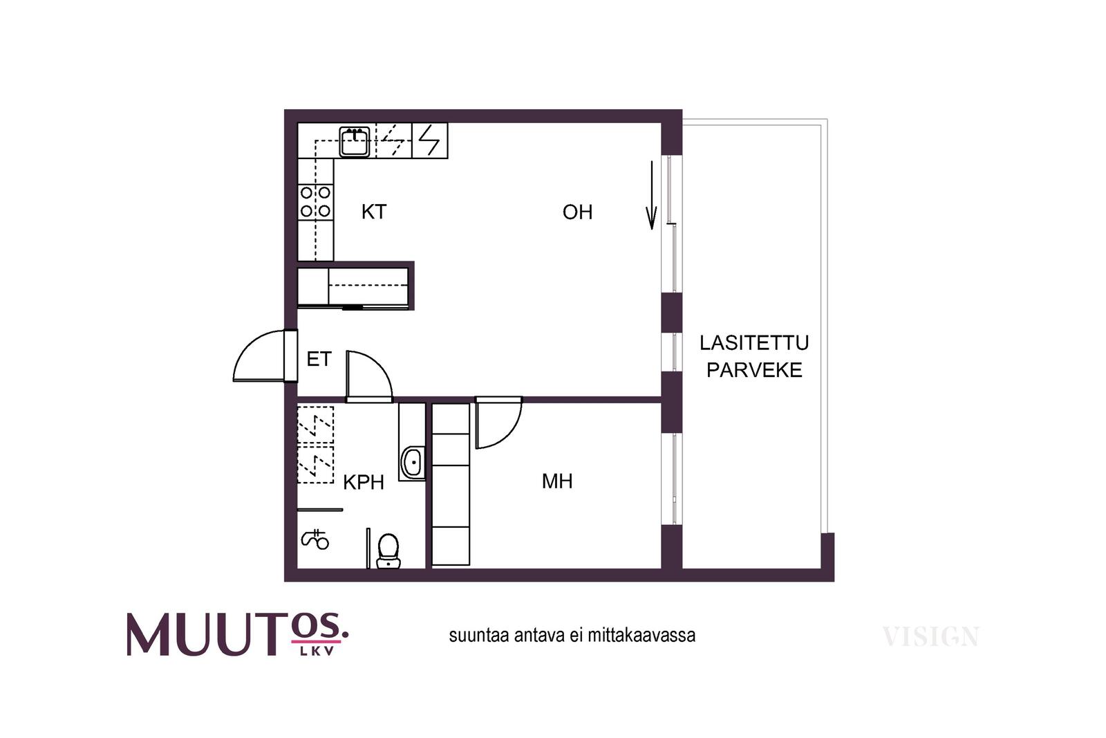 - Huoneiston todellinen pinta-ala voi olla yhtiöjärjestyksessä, isännöitsijäntodistuksessa ja esitteessä mainittua pienempi tai suurempi. Hinta ei ole pinta-alaperusteinen. Yhtiöjärjestyksen mukainen huoneistoselitelmä: 2h+kt