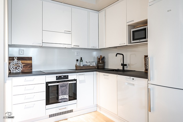 - Todella siisti ja tyylikäs keittiö, jossa hyvin kaapistotilaa. Keittiön jatkeena olohuoneessa tila ruokapöydälle. Varustus: induktioliesi, erillisuuni, jääkaappipakastin, astianpesukone, liesituuletin, kiinteät valaisimet ja kaapistot. Lattiapinnat parkettia, seinäpinnat maalattu.