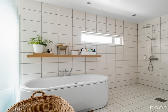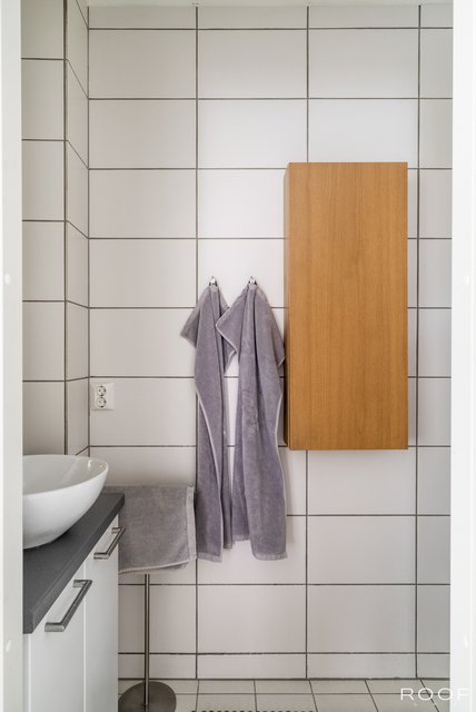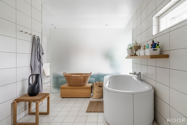 - Suihkuseinä, lattialämmitys, wc-istuin, suihku, peili, allaskaappi, ja kiinteät valaisimet