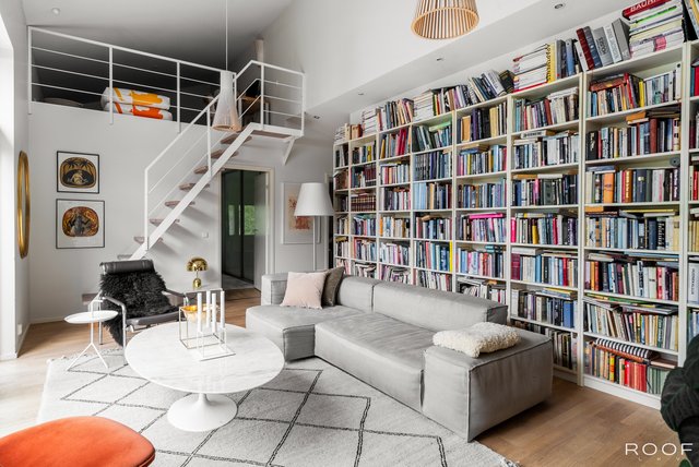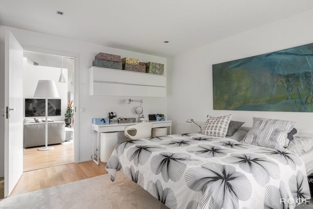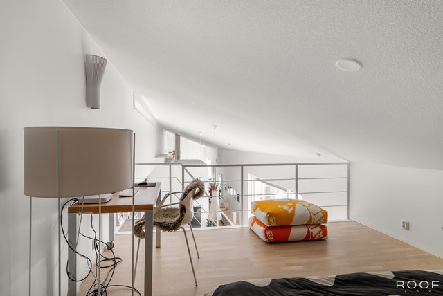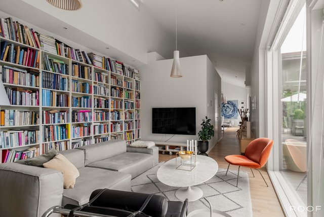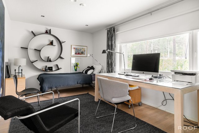 Makuuhuoneet sekä kirjasto/arkiolohuone sijaitsevat talon toisessa päädyssä omassa rauhassaan.