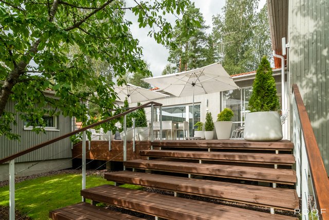 Kesäisin kodin terasseilla nautit päivistä niin oleskelun- kuin grillaamisenkin merkeissä. Tänne mahtuu suurempikin seurue nauttimaan, vaikka kesäjuhlista!