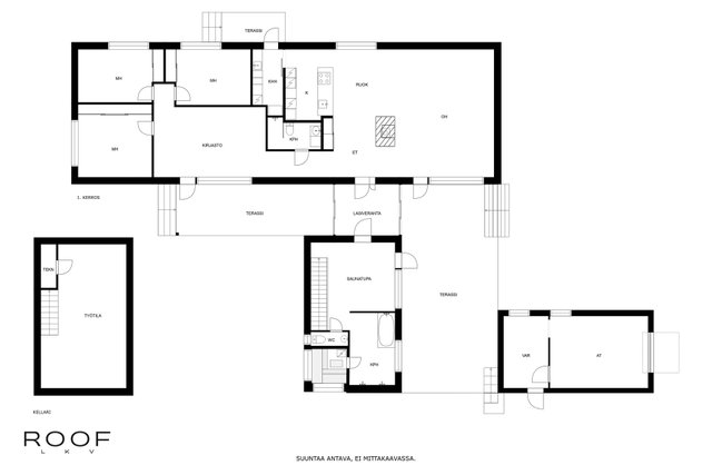 3mh+oh+ruokailutila+keittiö+kirjasto+parvi+khh+kph+saunatupa+eril.wc+pesuhuone+s+kellari/työtila+tekn.tila+autotalli