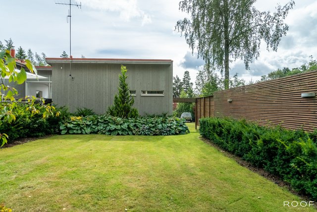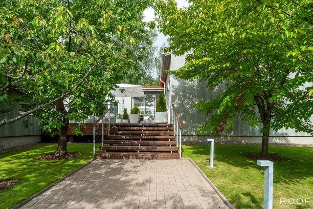 Kiinteistöllä on kaunis ja vehreä piha-alue jonne on istutettu puita ja pensaita. Vehreällä nurmella on tilaa, vaikka pihapeleille.