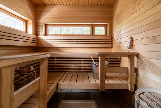 Lasiverannalta on käynti saunarakennukseen (saunatupa, pesuhuone, sauna, erillinen wc), jossa saat rauhassa rentoutua niin saunomisen- kuin kylvyn merkeissä. Saunarakennuksen alakerrasta löytyy kellari/työtila, joka taipuu moneen käyttötarkoitukseen. Täällä voit rauhassa, vaikka soittaa rumpuja tai harrastaa häiritsemättä muita.