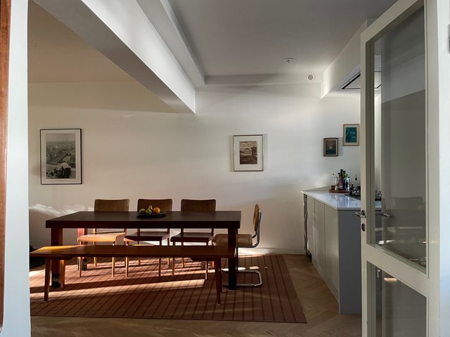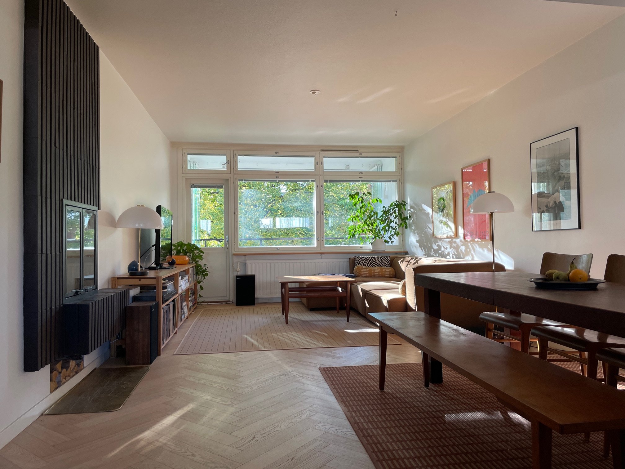 Asunto on kauniisti kauttaaltaan saneerattu joitain vuosia sitten. Asunnossa on tyylikäs kalanruotoparketti, keittiössä on integroidut kodinkoneet, kaasuliesi, saareke sekä aamiaiskaappi. Olohuoneessa on alkuperäinen edelleen toiminnassa oleva takka, jonka äärellä voi paahtaa vaikka vaahtokarkkeja. Keittiö, ruokailutila ja olohuone muodostavat ilmavan läpitalon menevän tilan, johon virtaa valoa myös makuuhuoneen vanhoista parilasiovista. Makuuhuoneessa on leveä ikkunarivistö, runsaasti kaappitilaa sekä työnurkkaus. Asunnossa on myös lasitettu parveke.