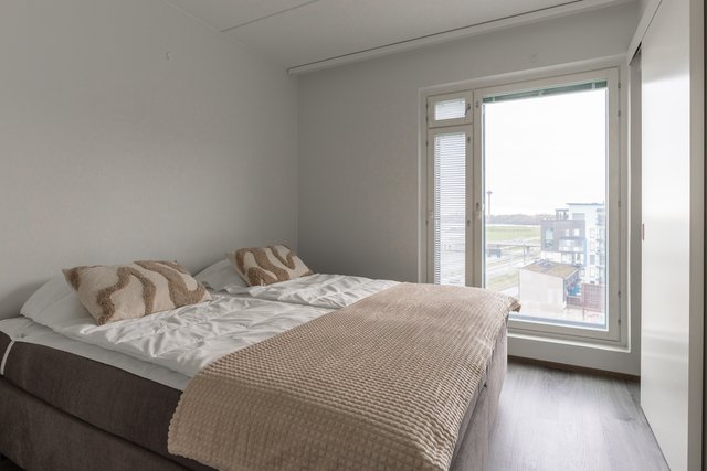 Kaksi makuuhuonetta tarjoavat harmonisen tasapainon – toisen yhteydessä tilava vaatehuone.