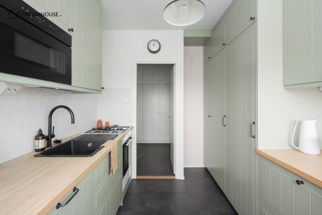 - Jääkaappi (integroitu), erillinen pakastin (integoroitu), astianpesukone (intergroitu), mikroaaltouuni (kalusteisiin asennettu), ja kaasuhella
