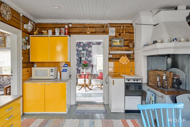 - Epävirallisen rakennus- ja huoneistorekisteriotteen mukaan mökin kerrosala on 45 m2. Huoneistoalaa ei ole tiedossa. Rakennusvalvonnasta ei ole saatavissa rakennuslupapiirustuksia tai tietoja pinta-aloista tai lopputarkastuksesta. Tämän vuoksi pinta-ala on ilmoitettu ulkomittojen mukaan. Tämä ei ole virallinen mittaustapa, joten pinta-ala voi poiketa virallisista pinta-aloista olennaisestikin. Kauppahinta ei ole pinta-alaperusteinen. Pinta-aloja ei ole tarkistusmitattu eikä hinta määräydy pinta-alan perusteella, vaan perustuu kiinteistöön kokonaisuutena. Todellisen asuinpinta-alan selvittämiseksi suositellaan tarkistusmittausta.
