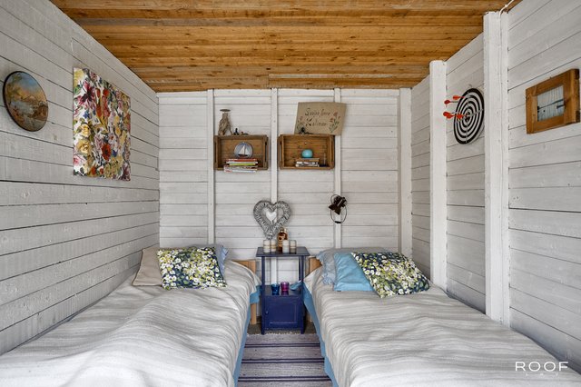 Päärakennuksen lisäksi pihapiirissä on varastorakennus, joka tarjoaa lisää makuutilaa ja säilytystilaa. Pihasauna ja viihtyisä kesäkeittiö täydentävät kokonaisuuden ja tuovat aidon mökkitunnelman.