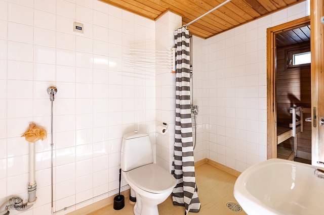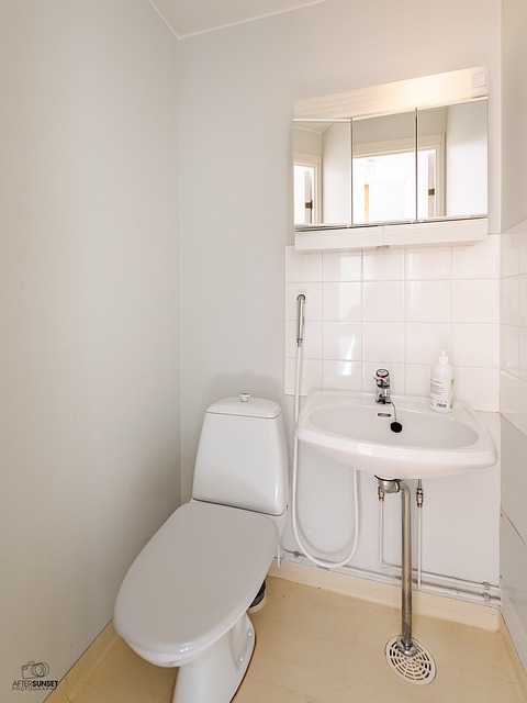 - WC-istuin, peili, pesukoneliitäntä, ja suihku