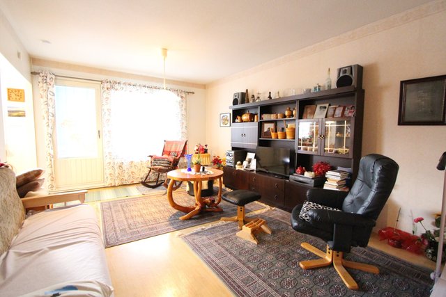 Mukavalla paikalla, omalla saunalla oleva 79 m2:n, tilava rivitalon päätyasunto Kummatissa.