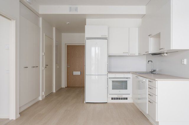 - Jääkaappipakastin, astianpesukone, uuni, liesi, ja liesituuletin