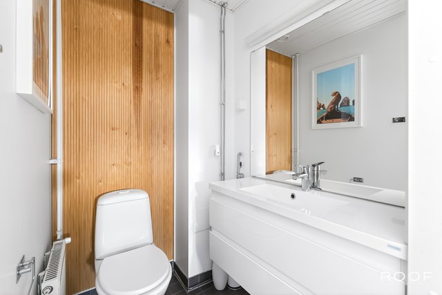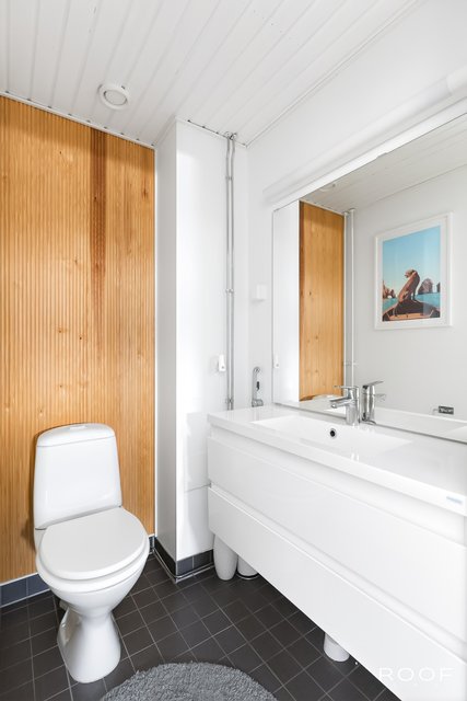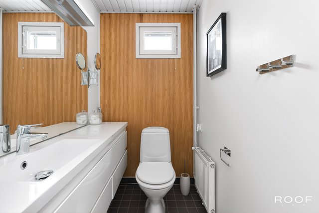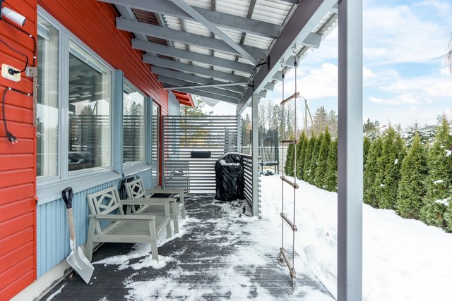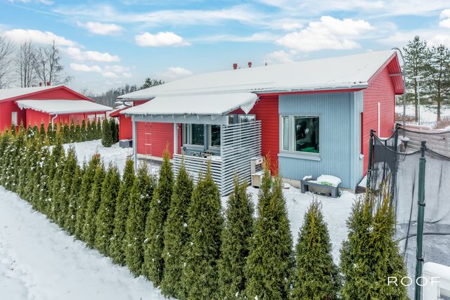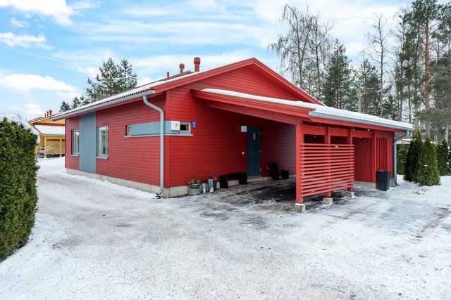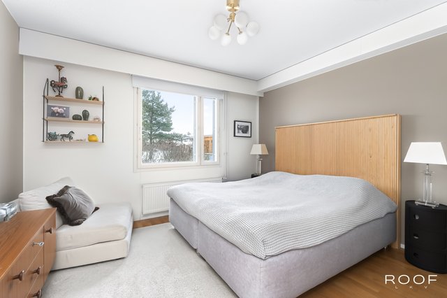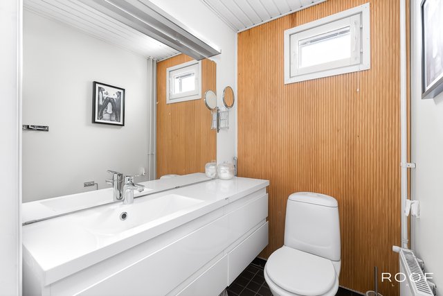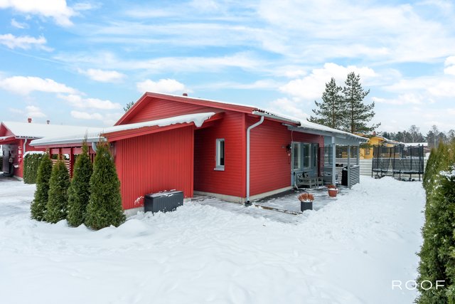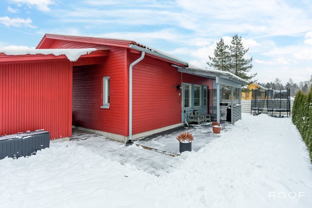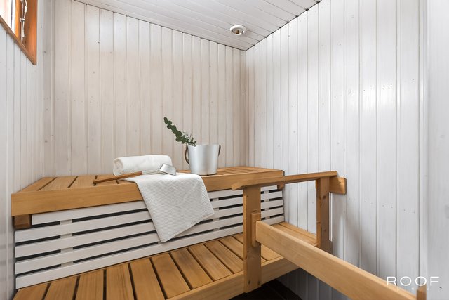 Kodissa on kolme makuuhuonetta, erillinen kodinhoitohuone, kaksi wc:tä sekä vaaleasävyinen saunaosasto, jotka tekevät arjesta sujuvaa myös isommalle perheelle. Säilytystilaa löytyy runsaasti vaatehuoneen, kaapistojen ja ulkovaraston ansiosta. Autokatospaikka ja pihapaikka tuovat vaivattomuutta autoiluun.