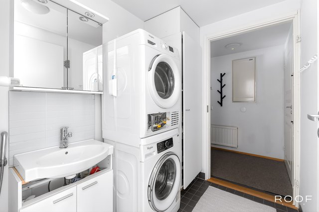 - Pesukoneliitäntä, pesuallas, käsisuihku, ja tila pesutornille