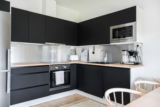 - Jääkaappipakastin, erillisuuni, liesi, liesituuletin, mikroaaltouuni, ja astianpesukone