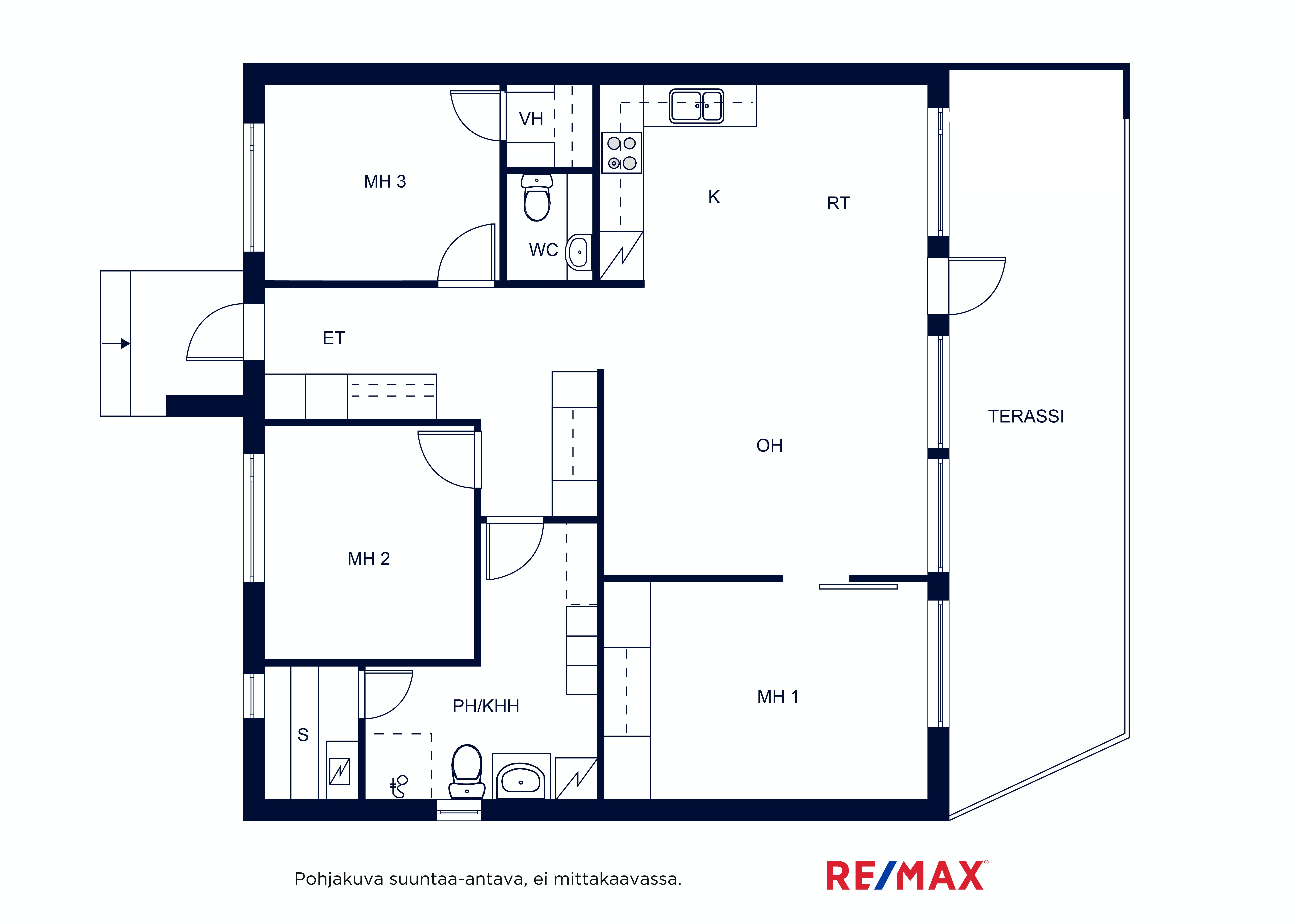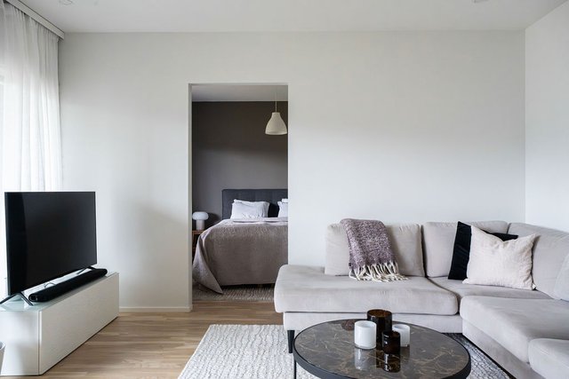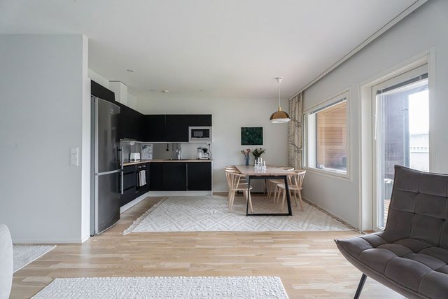 Tämän kodin värimaailma on toteutettu trendikkäillä maanläheisillä sävyillä. Kolme makuuhuonetta, avokeittiö ja valoisa olohuone muodostavat käytännöllisen kokonaisuuden. Päämakuuhuoneessa on liukuovi ja huone on tilava, yhden makuuhuoneen yhteydessä on vaatehuone. Keittiö ja olohuone on iso avara tila, joka antaa monia mahdollisuuksia sisustukseen. Huoneiston levyinen lasitettu terassi toimii hyvin viileämmälläkin säällä ajanviettopaikkana.