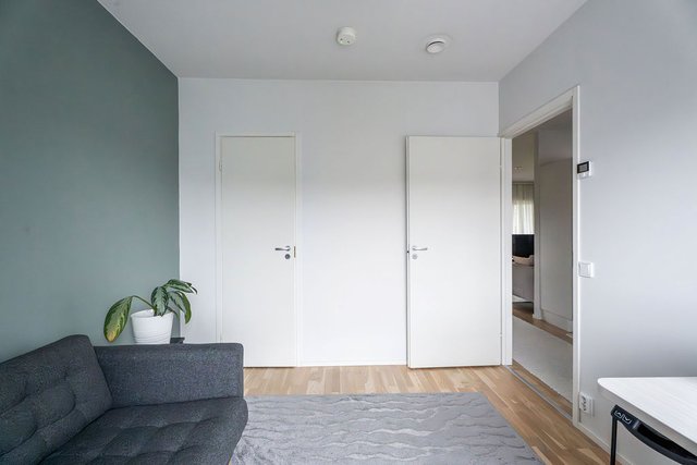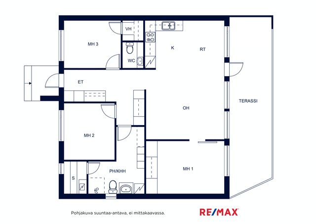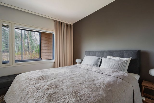 - Päämakuuhuone liukuovellinen 12 m². Kaksi muuta makuuhuonetta 9,3 m² ja 9,5 m².