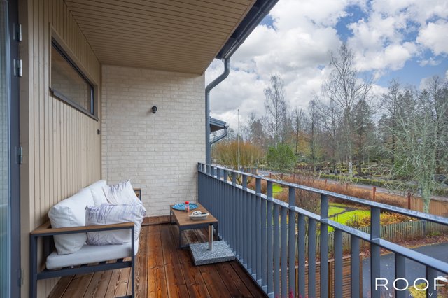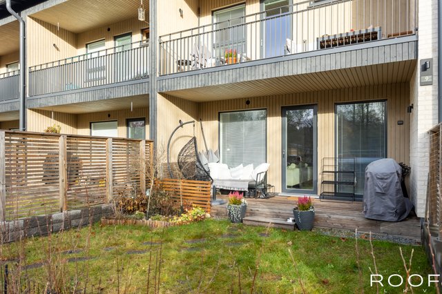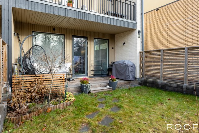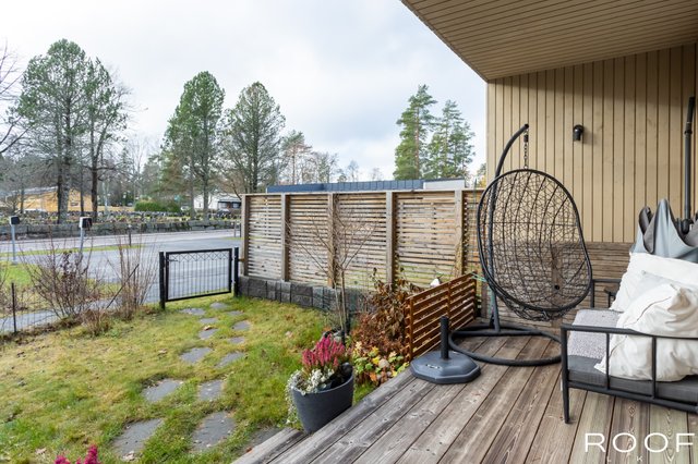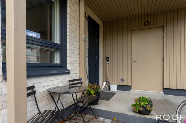 - Alakerrassa on puuterassi. Tässä huoneistossa sisäänkäynnin yhteydessä on kiviterassi, johon paistaa mukavasti aamuaurinko. Kunnossapitovastuu osakkaalla.