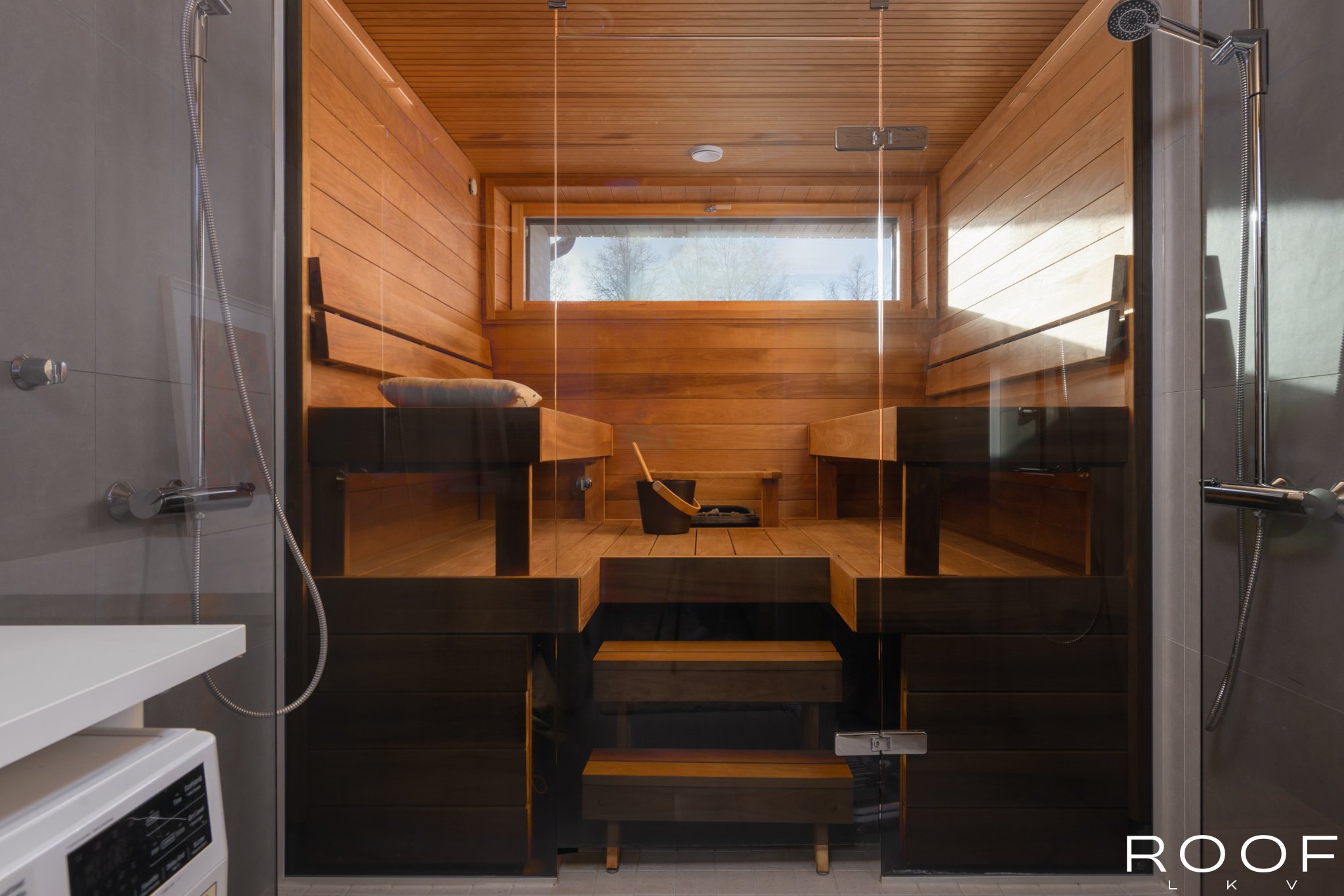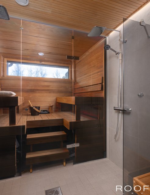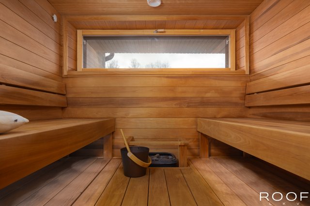 - Varustus: Kiuas, Lauteet Seinät: Paneeli Lattia: Laatta