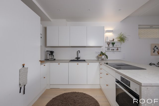 - Varustus: Induktioliesi, Liesituuletin, Uuni, Hana, Kaapisto, Allas, Astianpesukone, Jääkaappi, Pakastin, Integroitu mikroaaltouuni Seinämateriaali: Maali Lattiamateriaali: Parketti