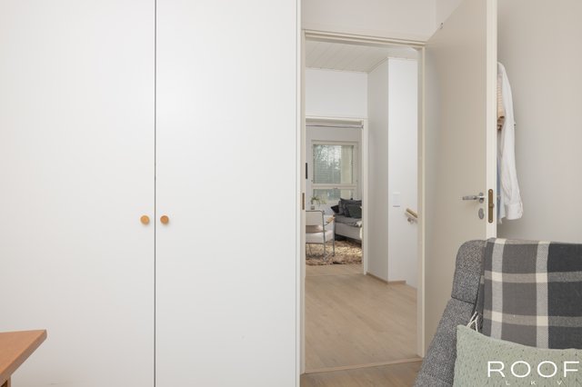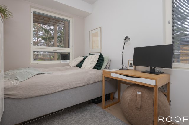- Kohteen markkinoinnissa käytetään mittatiedoilla varustettua pohjapiirrosta. Pohjapiirroksen tarkoitus on helpottaa ostajan ostopäätöstä ja selvittää asunnon nykyinen huonejako. Lukija on tietoinen, että pohjakuva on suuntaa antava, ei mittakaavassa, eikä perustu virallisiin piirustuksiin. Pohjapiirroksessa näkyvät mitat on luotu automaattisesti 3D-skannauksesta (leveys x pituus), eikä niiden oikeellisuutta ole tarkistettu. Pohjapiirroksessa näkyvät mitat ovat suuntaa antavia ja ne voivat näin ollen poiketa todellisista mitoista. Mitat tulee tarkistaa esimerkiksi remonttia suunniteltaessa. Mittauskohdat on merkitty kuvaan pienillä kolmioilla. Välitysliike, myyjä, eikä pohjakuvan laatija ole vastuussa, mikäli pohjakuvan mittasuhteet eivät todellisuudessa vastaa pohjakuvassa mainittuja mittasuhteita. Lukijan on tärkeää ymmärtää, että mittasuhteet voivat heittää kuvassa mainitusta enemmän tai vähemmän. Myytävän kohteen pinta-alatiedot selviävät myyntiesitteestä, eikä pohjakuvan mittatietojen pohjalta voida laskea/olettaa muita pinta-alatietoja.