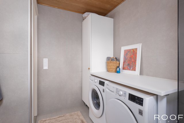 - Kylpyhuone 1 Varustus: Suihku, Suihkuseinä, Pesukoneliitäntä, Lattialämmitys, Pyykkikaappi Seinämateriaali: Laatta Lattiamateriaali: Laatta Kylpyhuone 2 Varustus: Suihku, Suihkuseinä, Wc istuin, Hana, Allas, Allaskaapisto, Lattialämmitys Seinämateriaali: Laatta Lattiamateriaali: Laatta Lisätietoa: Pyöreä valopeili molemmissa, toisessa yläkerran WC-tilassa ei ole erillistä suihkua ja suihkuseinää