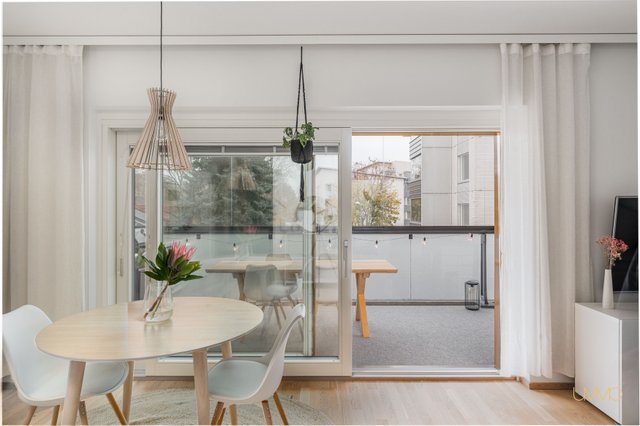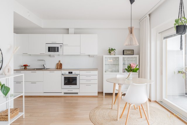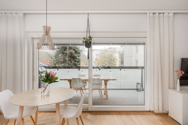 Tämän kodin parhaita puolia ovat tilava lasitettu parveke, ajattomat ja laadukkaat materiaalit, sekä käytännöllinen pohjaratkaisu! Avara olohuone yhdistyy saumattomasti kauniiseen vaaleaan avokeittiöön sekä hulppeaan koko asunnon mittaiseen lasitettuun parvekkeeseen. Lattiasta-kattoon olevat suuret ikkunat kaakon suuntaan - ja vielä lähes koko asunnon leveydeltä, sekä makuuhuoneen pienempi ikkuna lounaaseen takaavat runsaasti luonnonvaloa ympärivuoden.