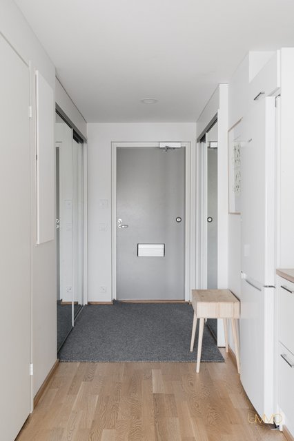 - Eteinen, jossa kummallakin puolella liukuovikaapistot.